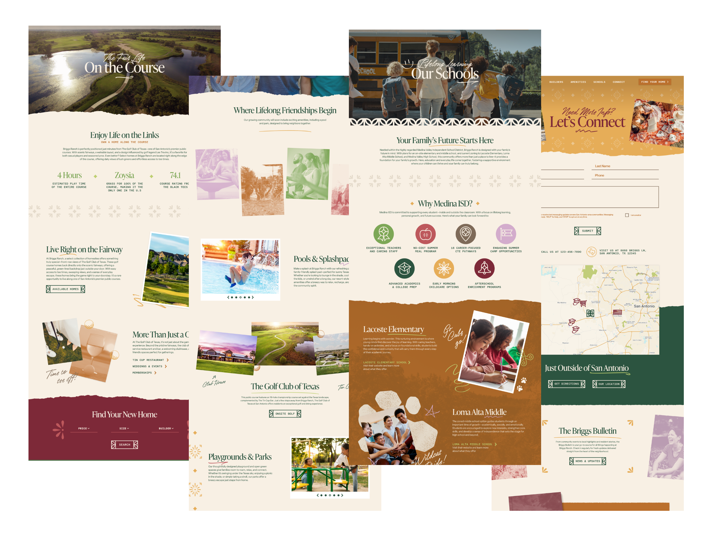 Briggs Ranch is a master planned community located just outside of San Antonio. This Johnson Land Ventures property came to ST8MNT for it’s identity development, website design, and ongoing monthly projects. I was tasked with designing this 15 page website as an extension of the brand we established, and an online representation of this easy, breezy, community. The brand is a touch of maximalism and playful layering, with San Antonio influence and style.