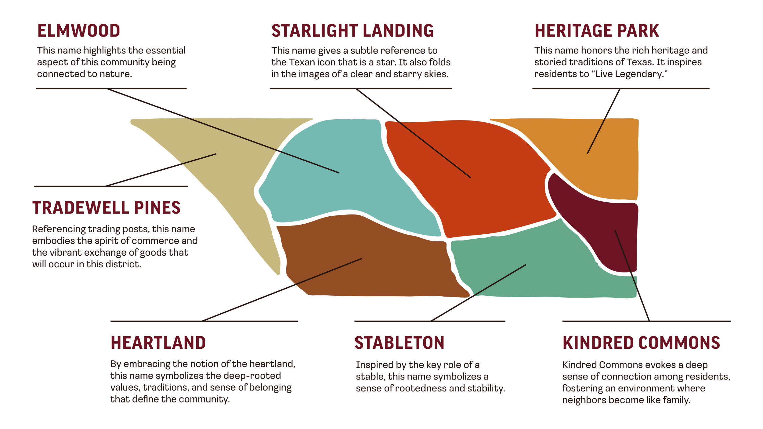 In addition to branding, the team at ST8MNT helped established how this brand is carried across many platforms, even down to naming districts and streets within the community. Every piece that we’ve designed helps further tell the story of this community, painting a clear picture of life in this Texan masterpiece.